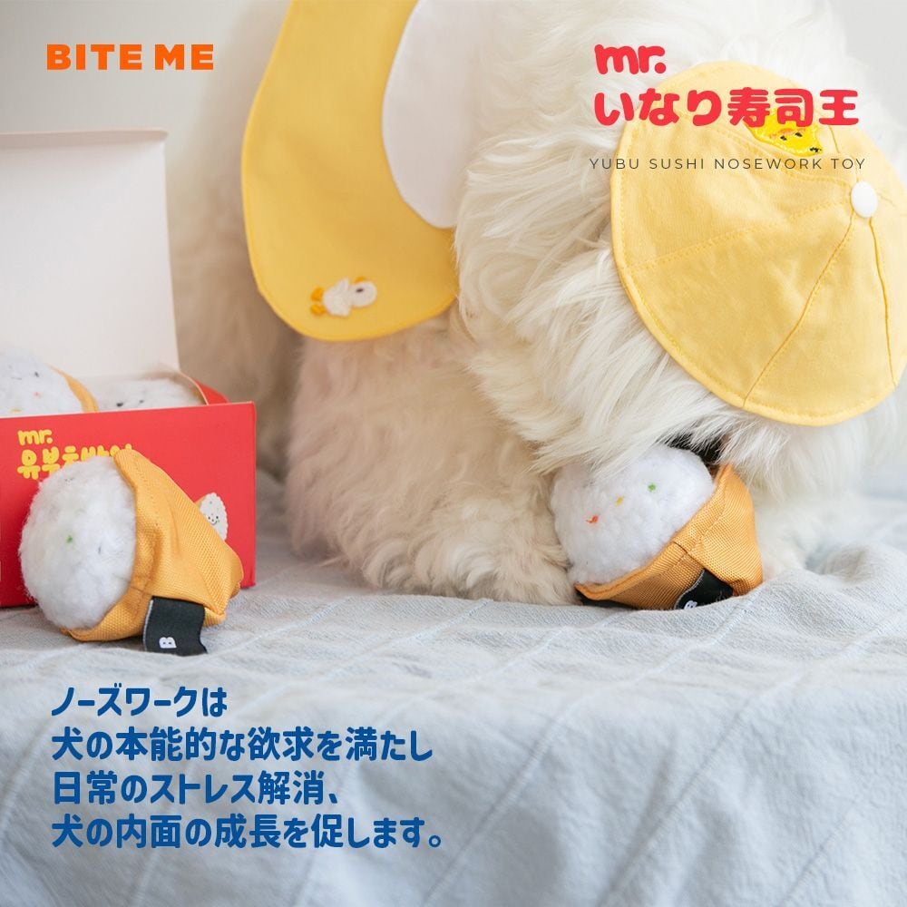 柔らかな肌触りのおいなりさんはおやつを隠して遊べるノーズワークトイになっています。