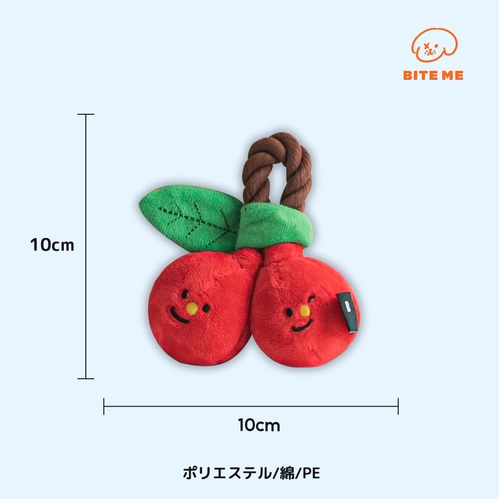 ピーピー音、ひっぱりっこ遊び 丈夫なロープが付いている、ピーピー音が鳴るチェリー! 小さい葉はカシャカシャ音が鳴らせます。
